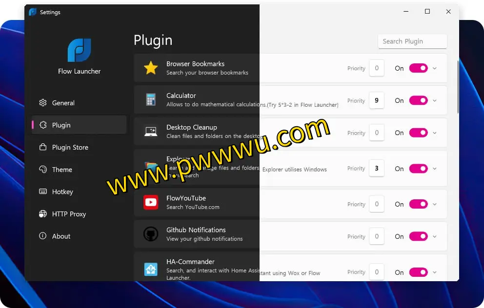 程序具备丰富的插件生态,用户可通过内置商店安装多样化扩展组件,从而增强搜索能力。除基础搜索外,还集成网络检索、书签查询与系统指令执行等实用功能。