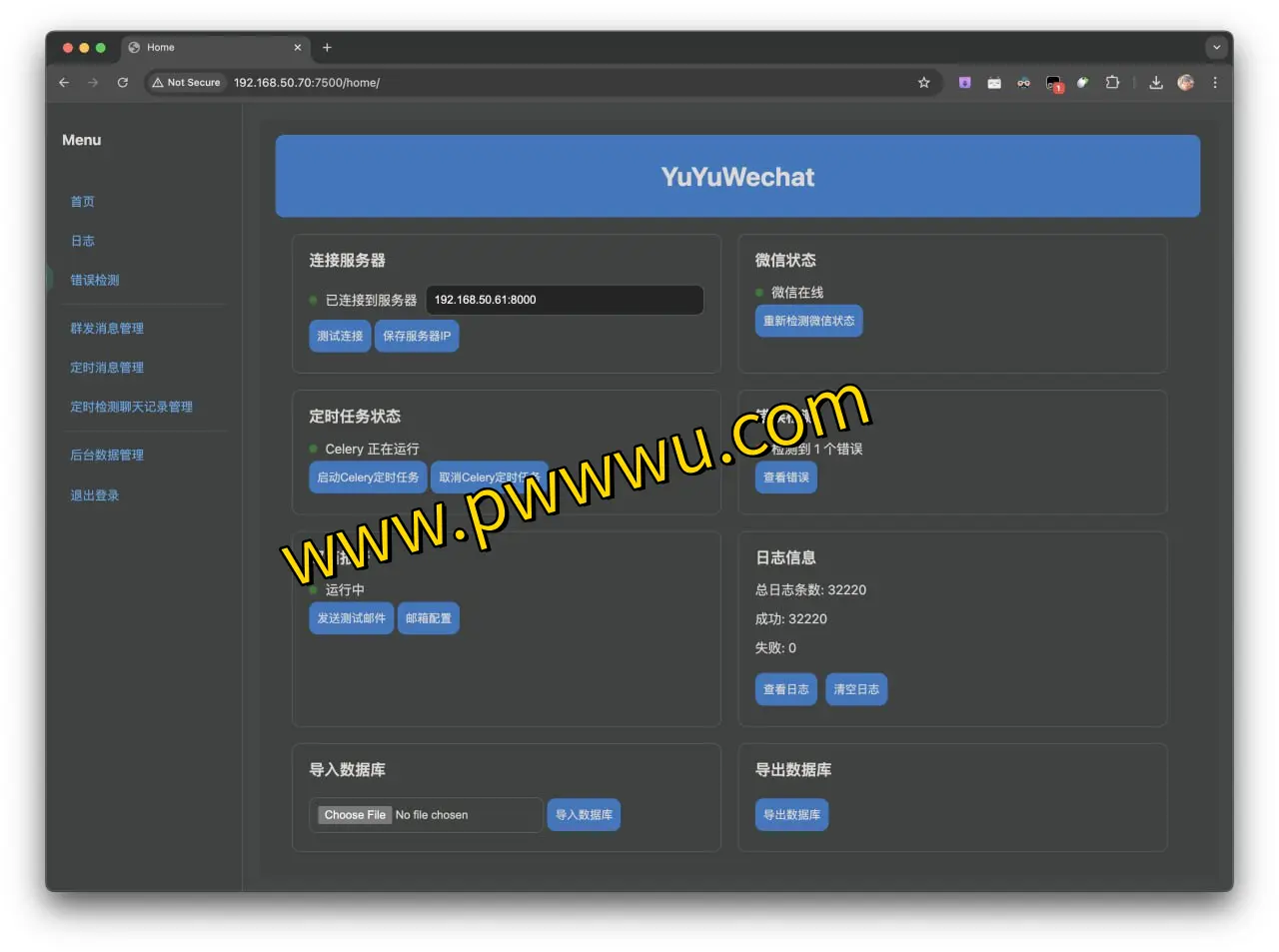 本工具专注于实现微信消息的定时发送。它能够设定精确至分钟的发送计划,并支持消息与文件的循环发送。此外,软件还提供了批量群发消息、定时查阅聊天记录等实用特性。系统内置了自动错误监测与邮件提醒机制,有效帮助用户规避潜在问题。