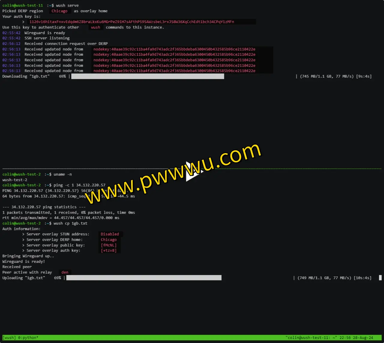 wush是一款命令行工具,它借助点对点的WireGuard网络连接,实现高效便捷的文件传输与远程操作。