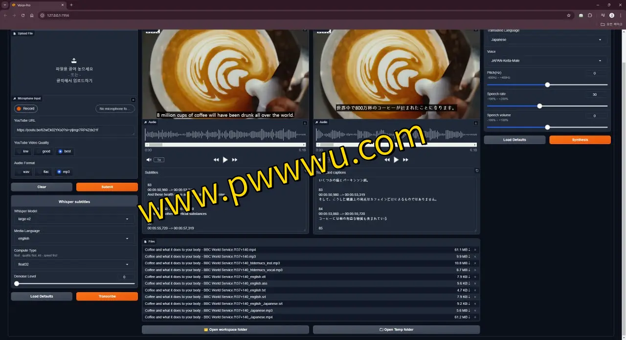 这款名为Voice-Pro的专业音频应用程序,专注于提供多样化的声音处理解决方案。该工具整合了语音转文字、多语言翻译以及文本朗读等核心功能,能够满足用户在音频编辑方面的不同需求。