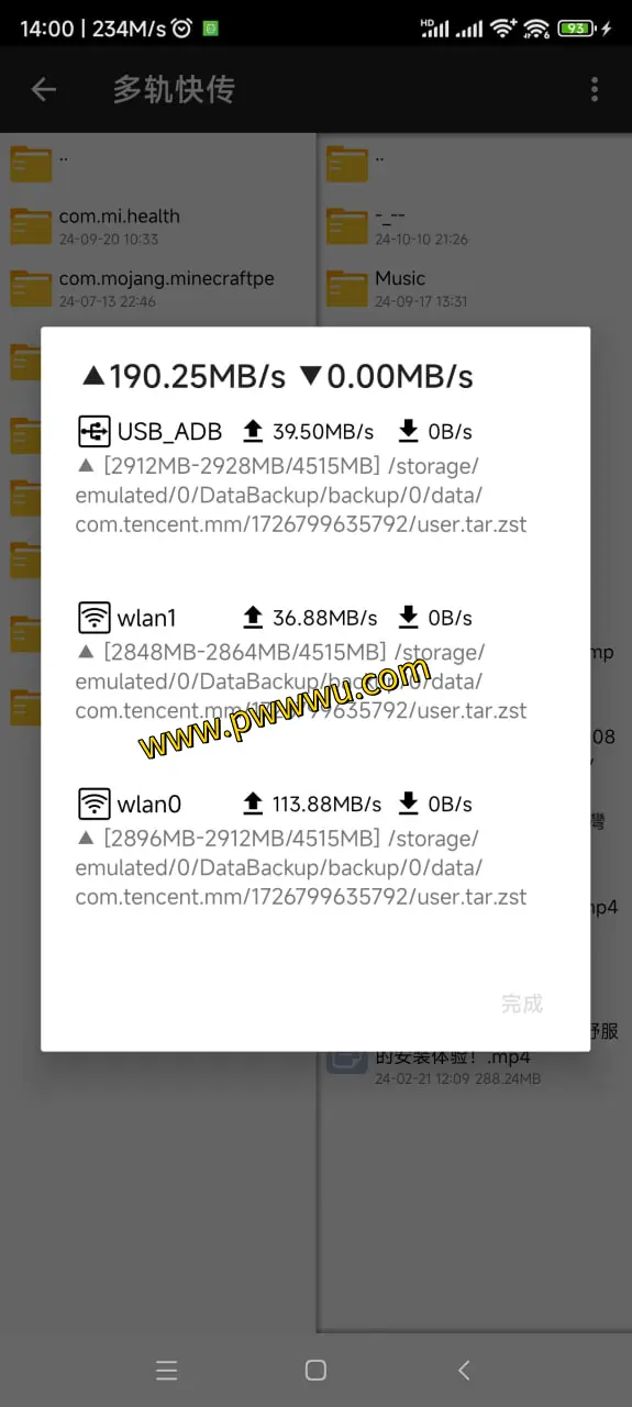 程序采用智能分流技术,可同步调用USB接口与双频WiFi网络(包括5GHz和2.4GHz)建立复合传输通道。通过深度优化手机存储读写机制,实测传输峰值可达200MB/秒。提供标准与高级两种工作模式,高级模式可解锁系统深层目录访问权限。兼容多种连接方案,包含USB调试端口与移动热点连接等传输途径。