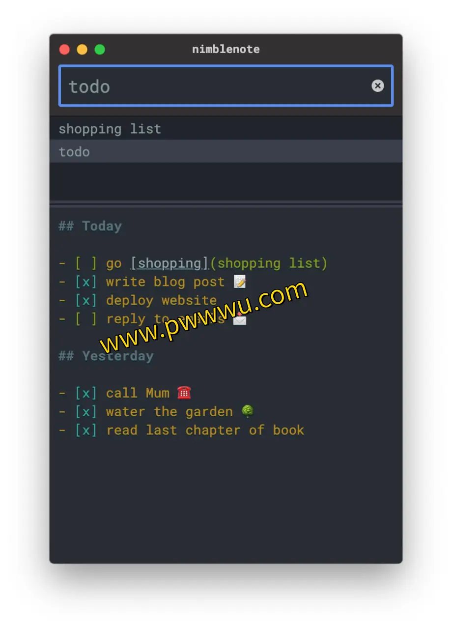 这是一款设计简洁的笔记工具,致力于提升记录与整理的效率。用户能够完全依靠键盘指令,迅速完成笔记的查找、新建、修改与移除操作,实现了脱离鼠标的流畅体验。