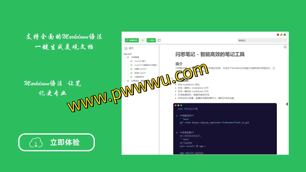 这是一款面向高效工作人群设计的笔记工具,融合了Markdown语法的高效编辑能力与现代化的视觉界面,致力于提供顺畅便捷的记录体验。