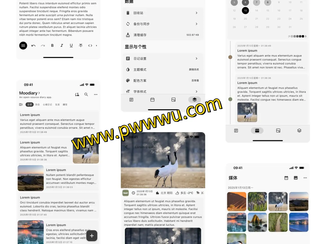 该应用提供富文本编辑能力,允许在日记中插入图片、音频和视频等多媒体文件。通过内置的检索和分类工具,用户可以便捷地整理和查找过往记录。