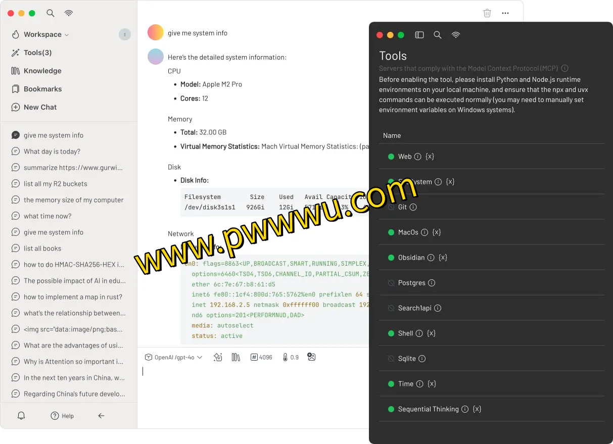 5ire是一款跨平台桌面智能助手应用,兼容多种主流AI服务提供商。该程序不仅具备基础对话功能,还支持建立本地知识库,通过模型上下文协议服务器连接各类工具,实现文件系统操作、数据库管理及远程数据获取等进阶操作。