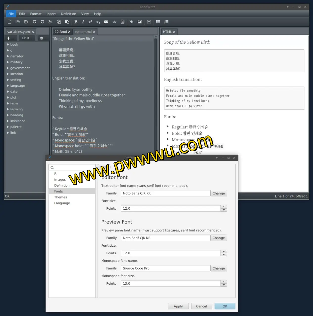 KeenWrite 是一款功能完善的 Markdown 文本编辑工具。这款免费的桌面应用程序能够跨操作系统运行,让用户便捷地进行文本创作与样式调整。它兼容多种文档格式的读取与保存,尤其适用于学术研究、公文起草以及其他对版面设计有较高要求的写作场景。