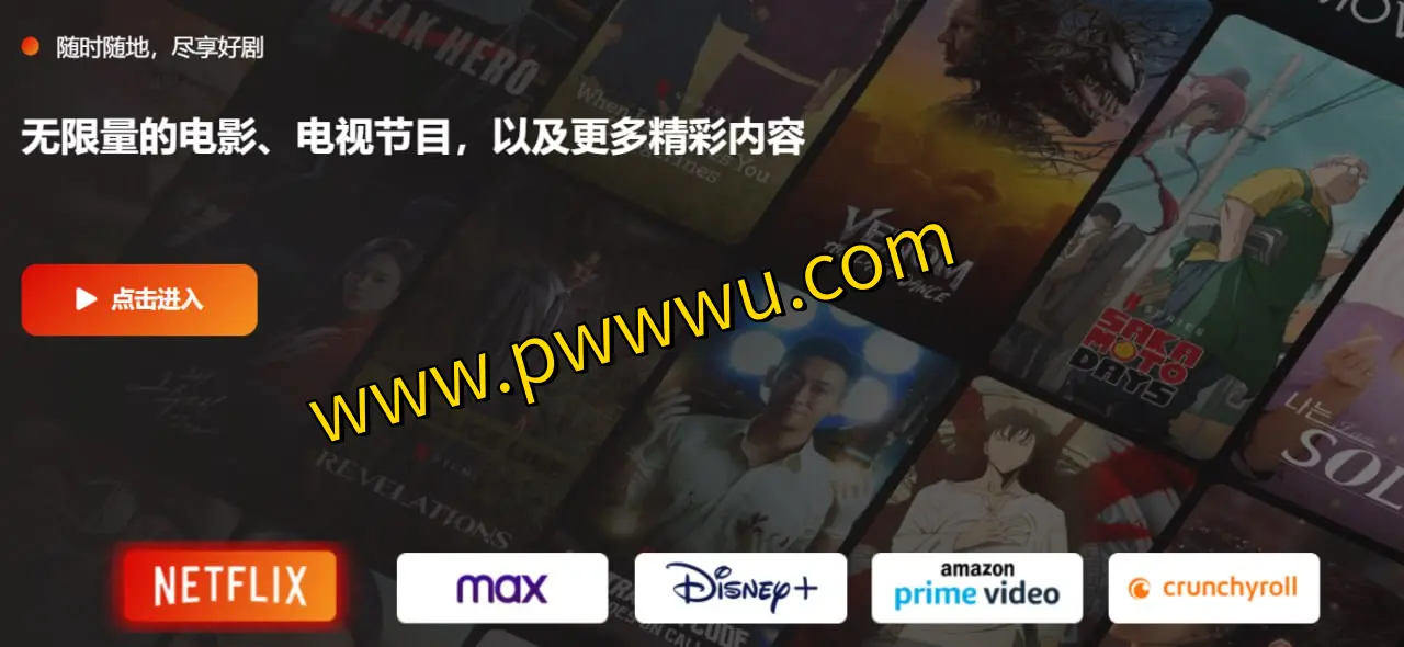 本应用是一款专注于影视剧观看的聚合工具,能够在一个界面内无缝浏览多个主流视频平台的完整内容库,包括NETFLIX、HBO Max、Disney+、Amazon Prime Video以及Crunchyroll等。