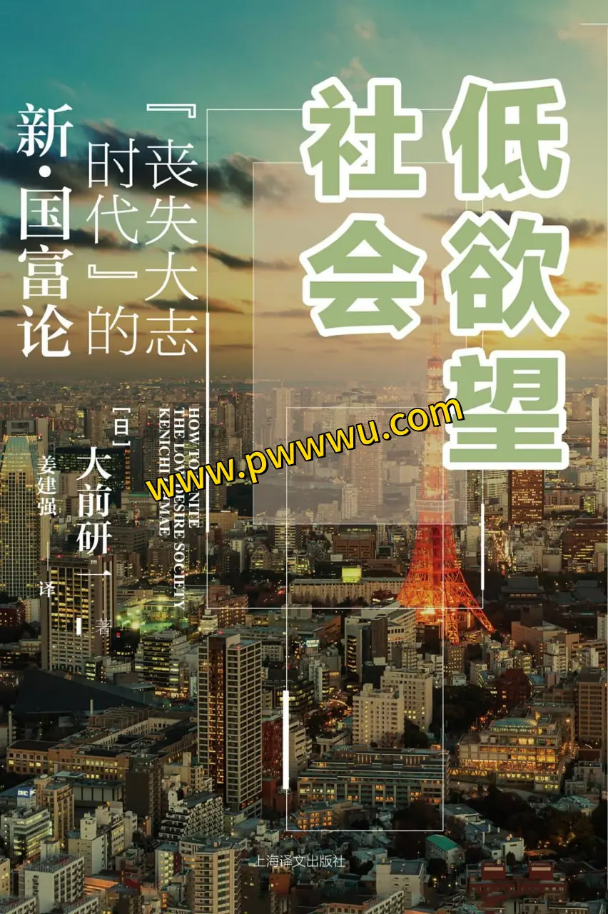 《低欲望社会》是日本管理学专家、有着“策略先生”之称的大前研一撰写的一部社会观察类畅销书。在这部作品中,大前研一深入探讨了日本当前的社会经济现象,并将其他国家尚未普遍经历的问题概括为“低欲望社会”。这一概念涵盖了人口缩减、超高龄化、以及年轻一代日益丧失上进心和欲望的趋势。