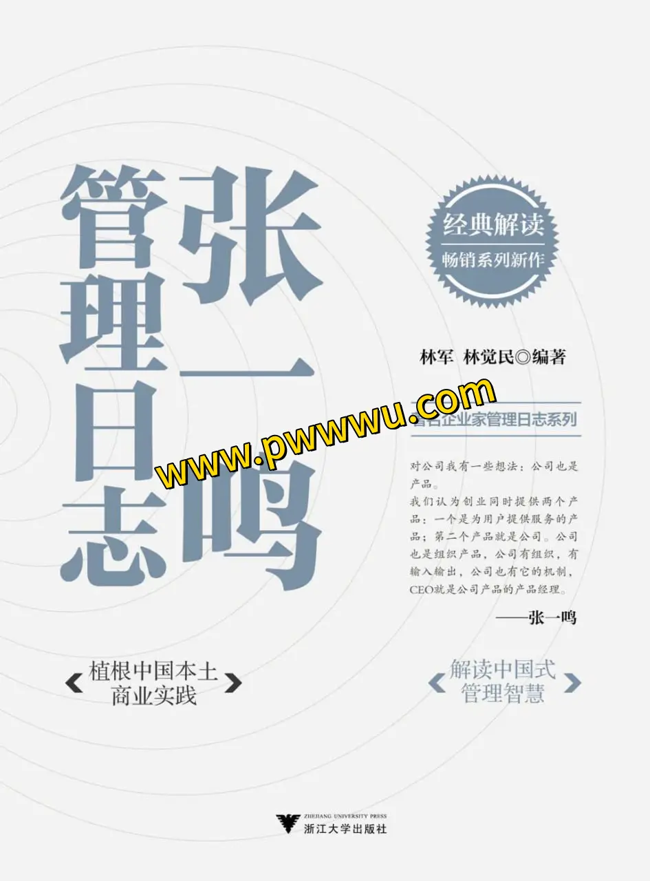 作为“中国著名企业家管理日志”系列的一部分,本书致力于从企业家的实际经验出发,深入挖掘、整理、总结、研究并传播杰出的管理思想。本书详细回顾并分析了张一鸣在企业管理和创新发展方面的深刻见解,旨在为当前的中国企业家和创业者提供在动荡时代中稳步发展的策略和方法论。