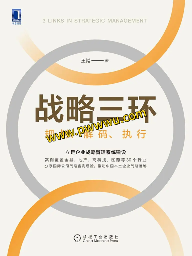 本书由王钺撰写,他是一位拥有二十年管理经验的前国际管理咨询公司高管。他从丰富的工作实践中提炼出一套战略管理框架:战略管理=战略规划×战略解码×战略执行×领导力。书中不仅深入探讨了战略三环的具体实施步骤,还提供了实用的管理工具、表格和流程,以及30个实战案例,为战略管理实践提供了一本实操指南。