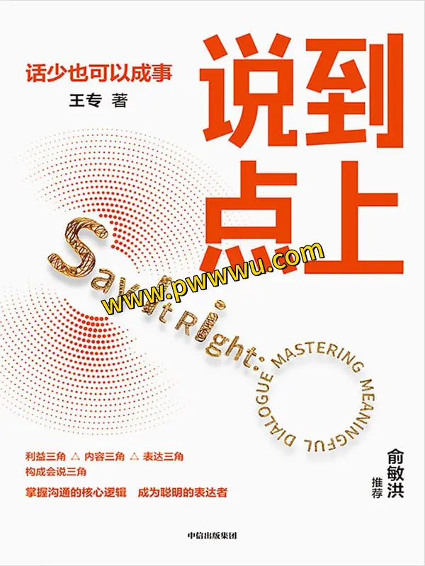 《说到点上》一书,作者王专凭借丰富的培训经验和个人成长,提出了“会说三角”沟通模型。这一模型由“利益三角”、“内容三角”和“表达三角”构成,旨在通过幽默而轻松的语言,将复杂的沟通问题简化分解,揭示沟通的核心逻辑。书中不仅理论深刻,更在实际应用场景中,指导读者如何具体操作,解决实际问题,内容易懂且可操作性强。
