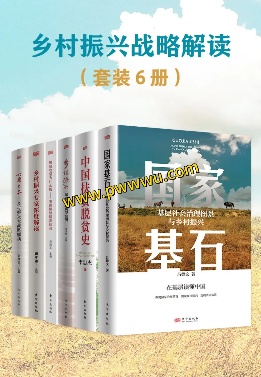 其他五册著作分别为《中国扶贫脱贫史》《乡村振兴探索创新典型案例》《脱贫攻坚为什么能:案例解读精准扶贫》《乡村振兴专家深度解读》以及《大国之本:乡村振兴大战略解读》,这些作品从不同角度深入解读中国扶贫脱贫的历史进程、乡村振兴的实践经验、精准扶贫的成功案例以及乡村振兴的战略意义。