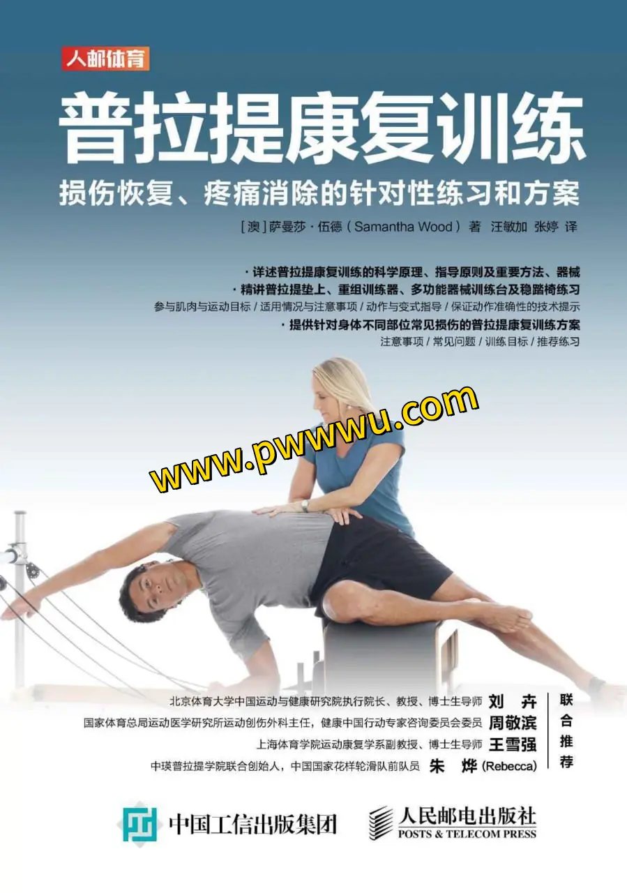 在遭受运动损伤或慢性疼痛时,进行有序且有效的康复训练至关重要。普拉提,作为一种全身性训练方式,能够有效应对损伤和疼痛问题,助力个体恢复运动能力,实现运动目标。《普拉提康复训练:损伤恢复、疼痛消除的针对性练习和方案》一书,作者凭借丰富的学习、研究和实践经验,深入阐述了普拉提在损伤康复、增强功能性力量、优化动作和疼痛管理方面的应用。书中详细展示了普拉提的垫上练习和器械练习,包括基本动作及其变体,并提供了分步骤的图文指导。这些指导涵盖了练习中涉及的主要肌肉群、运动目的、注意事项、动作要领和技术细节。同时,书中还介绍了常见损伤的症状、注意事项、训练目标和相应的康复方案,为读者提供了全面的普拉提康复训练指南。