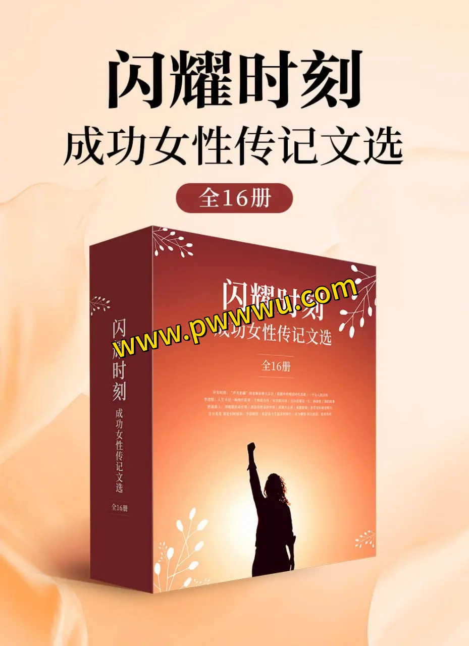 这套文学系列共包含16部作品,涵盖了不同时代、不同领域的杰出女性,每一部都是对她们生平和精神的深刻描绘。它们分别是:《异见时刻:“声名狼藉”的金斯伯格大法官》讲述了美国最高法院大法官金斯伯格的非凡人生;《我眼中的殖民时代香港》揭示了香港殖民时期的独特风貌;《一个女人的自传》展现了一位女性的成长故事;《李清照:人生不过一场绚烂花事》是对宋代才女李清照的诗意解读;《王映霞自传》呈现了王映霞的个人历程;《宋美龄自述》揭示了宋美龄的亲身经历;《且以优雅过一生:杨绛传》描绘了杨绛的优雅一生;《我的故事》是作者的自述;《逆流而上:刘媛媛的成长课》讲述了刘媛媛的成长之路;《创造你想要的世界》鼓励读者创造自己理想的世界;《武则天正传》深入探讨了武则天的传奇;《成都姑娘》描绘了成都女性的风土人情;《你若安好便是晴天》是对美好生活的向往;《寻寻觅觅却是旧时相识:李清照传》再次聚焦李清照的生活与艺术;《你是我今生最美的修行》是对爱情和人生的一种深刻感悟;《因为懂得所以慈悲:张爱玲传》则是对张爱玲生活与文学的深刻理解。这些作品共同构成了一幅丰富多彩的女性生活画卷,为读者提供了一次深入了解不同女性故事的机会。