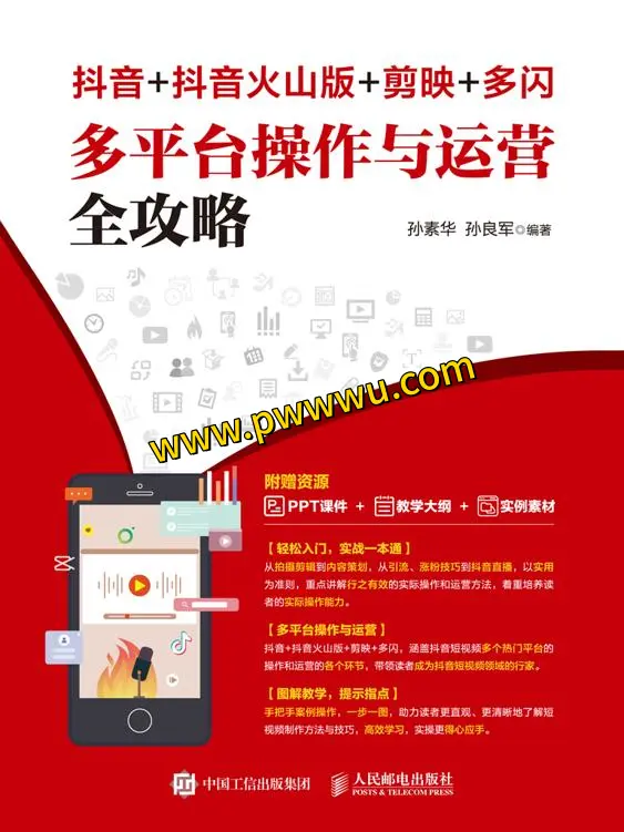 书中还提供了丰富的教学资料,包括详尽的教学大纲、PPT讲义以及实用的视频素材,旨在辅助读者更好地学习和应用。本书不仅适用于短视频和新媒体行业的从业者,也是各类培训机构的理想教材。