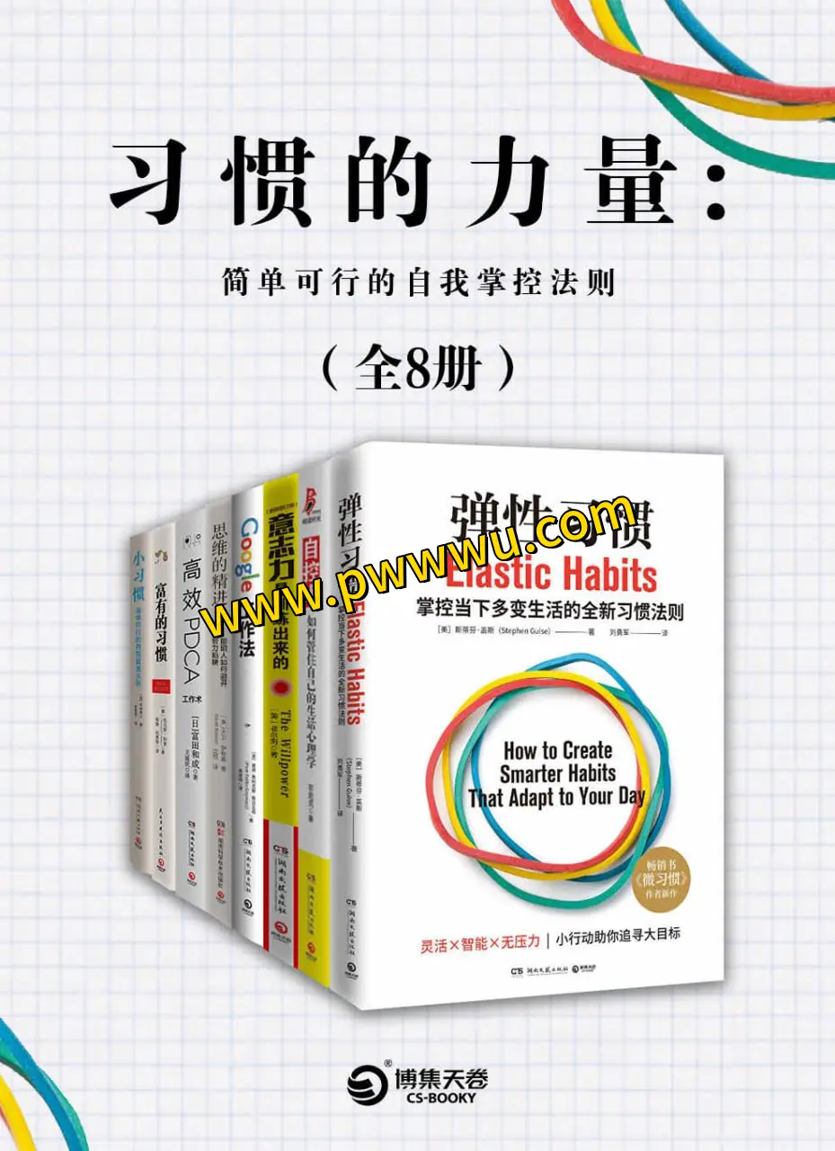 这是一套精心设计的自我提升指南,专注于“习惯养成”的励志书籍系列。本套装涵盖了八本书籍:《小习惯》、《弹性习惯》、《富有的习惯》、《意志力是训练出来的》、《高效PDCA工作术》、《Google工作法》、《思维的精进》以及《自控术:如何管住自己的生活心理学》。这些书籍旨在为您提供一套实用的方法,帮助您逐步建立和优化日常习惯,从而实现个人成长和生活掌控。