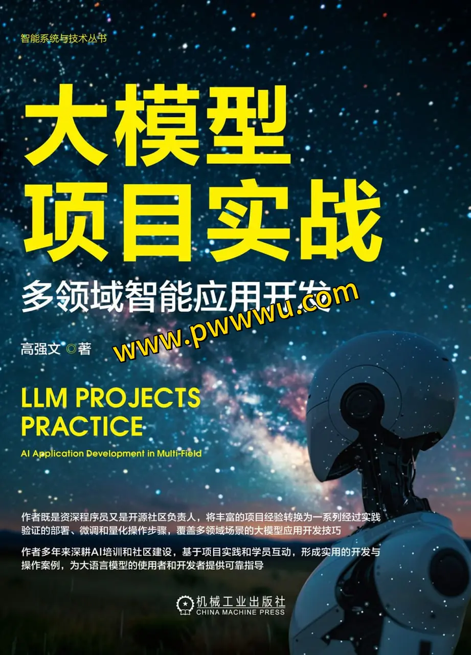 本书分为三个部分,共18章,旨在引导读者逐步深入掌握大型语言模型的基础知识、操作技巧和应用开发。第一部分,基础篇,概述了大型语言模型的基本概念、架构和工作模式。第二部分,操作篇,深入探讨了实际操作环节,涉及环境搭建、主流开源大型语言模型的安装与配置、微调和量化等关键步骤。第三部分,开发篇,全面展示了大型语言模型在Chat、辅助编程、RAG、翻译、AIAgent、智能语音对话、数字人、模型训练以及AI小镇等九大领域的应用开发过程。这一部分从基本工作原理出发,详细分析源代码,指导如何部署和运行模型,并验证测试结果。