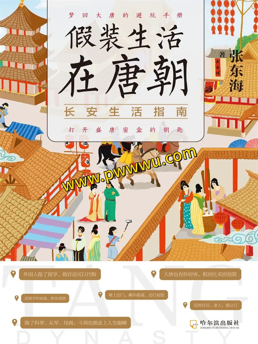 《假装生活在唐朝:长安生活指南》是一本带你领略唐朝长安城市风貌的作品。本书涵盖了皇宫、房产、外国人生活、流行时尚与娱乐等多个维度,为你揭开唐朝生活的神秘面纱。作者张东海,一位来自内蒙古的航天工程师兼历史爱好者,以其深厚的历史功底和近百万字的创作,荣获众多平台的赞誉与奖励。