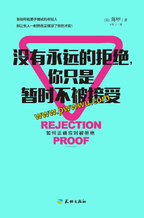 蒋甲在书中分享了如何将拒绝转化为个人成长的机会,以及如何在遭遇拒绝时保持积极的态度。他的经历和见解为那些经常感到害怕拒绝的人提供了实用的指导和深刻的洞见。《碰壁100天》不仅是对蒋甲个人成长历程的记录,也是一份鼓舞人心的指南,帮助读者在面对生活中的挑战时,能够勇敢地迈出步伐,不畏失败。