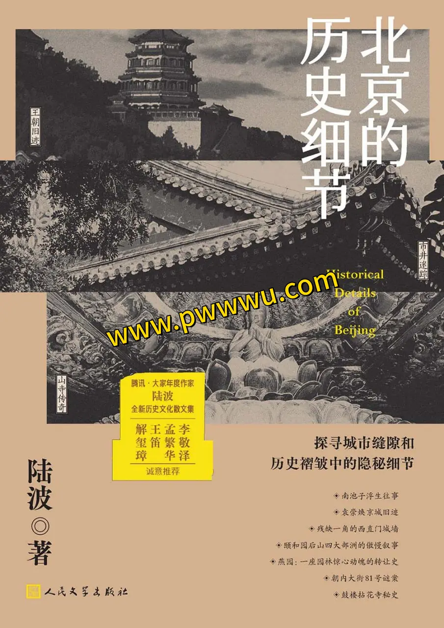 陆波以其细腻的笔触,将北京的历史与文化娓娓道来,让读者仿佛置身于那些古老的时光之中。在“王朝旧迹”篇章中,作者追溯了北京作为古都的辉煌与沧桑;“市井迷踪”则描绘了老北京的日常生活与民间传说;“山寺传奇”则讲述了京城周边的寺庙与传奇故事。每一章节都是对北京这座城市深厚文化底蕴的一次深刻挖掘。