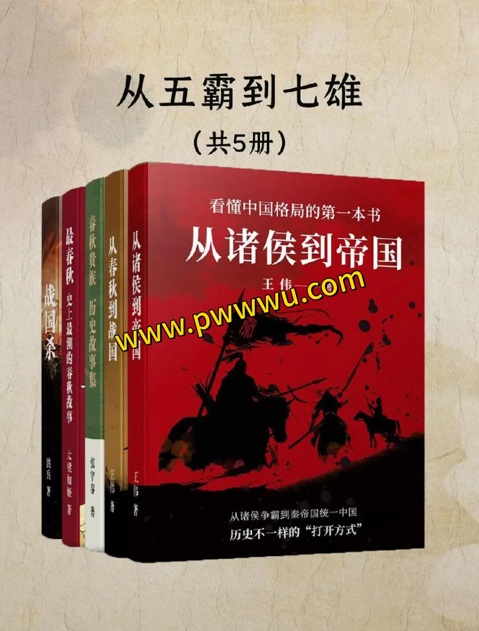 本系列书籍共五册,深入探讨了春秋战国时期的历史和故事。《从诸侯到帝国》和《从春秋到战国》两册,从战略的高度剖析了诸侯间的斗争以及秦国最终的统一。《最春秋》则采用现代视角,重新解读春秋时期的经典故事。《春秋贵族》通过一系列贵族的故事,展现了当时的历史规范。而《战国杀》则生动描绘了战国时期七大强国之间的激烈竞争和生死较量。
