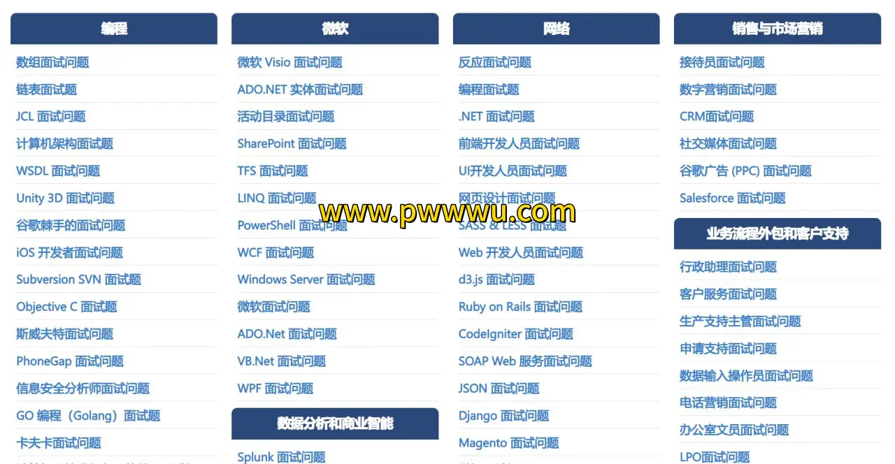 Career Guru99汇集了海外不同行业的面试题目资源,为求职者提供丰富的备考材料。该平台覆盖多个专业领域,帮助用户提前熟悉各类岗位的考核方向。