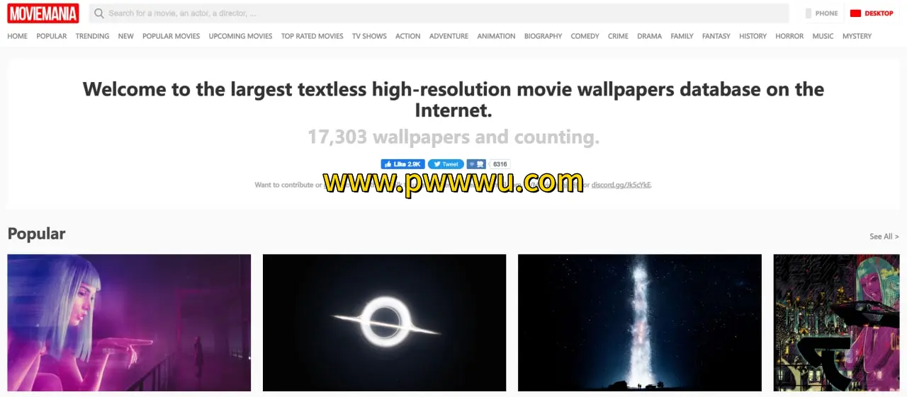 MOVIEMANIA是一个专注于收录全球影片高清海报资源的视觉平台。该站点致力于打造全球规模最大的高分辨率电影壁纸资料库,目前已完成17304幅超清电影壁纸的整合工作。
