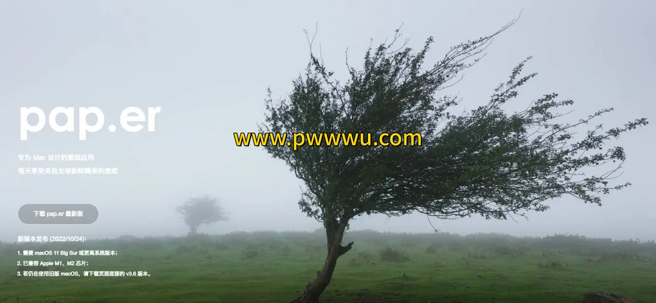 专为苹果电脑用户打造的壁纸工具pap.er,每日精选世界各地的高质量壁纸图片,为您的设备桌面带来持续焕新的视觉体验。