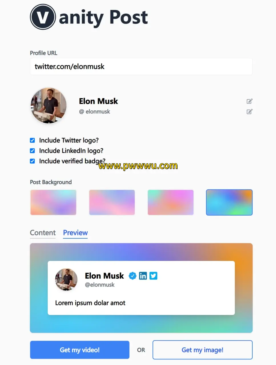Vanity Post 是一个在线服务,可以帮助你生成个性化的社交平台简介卡片。通过这个工具,用户能够快速创建出风格独特的个人名片,用于展示在社交媒体的个人资料中。