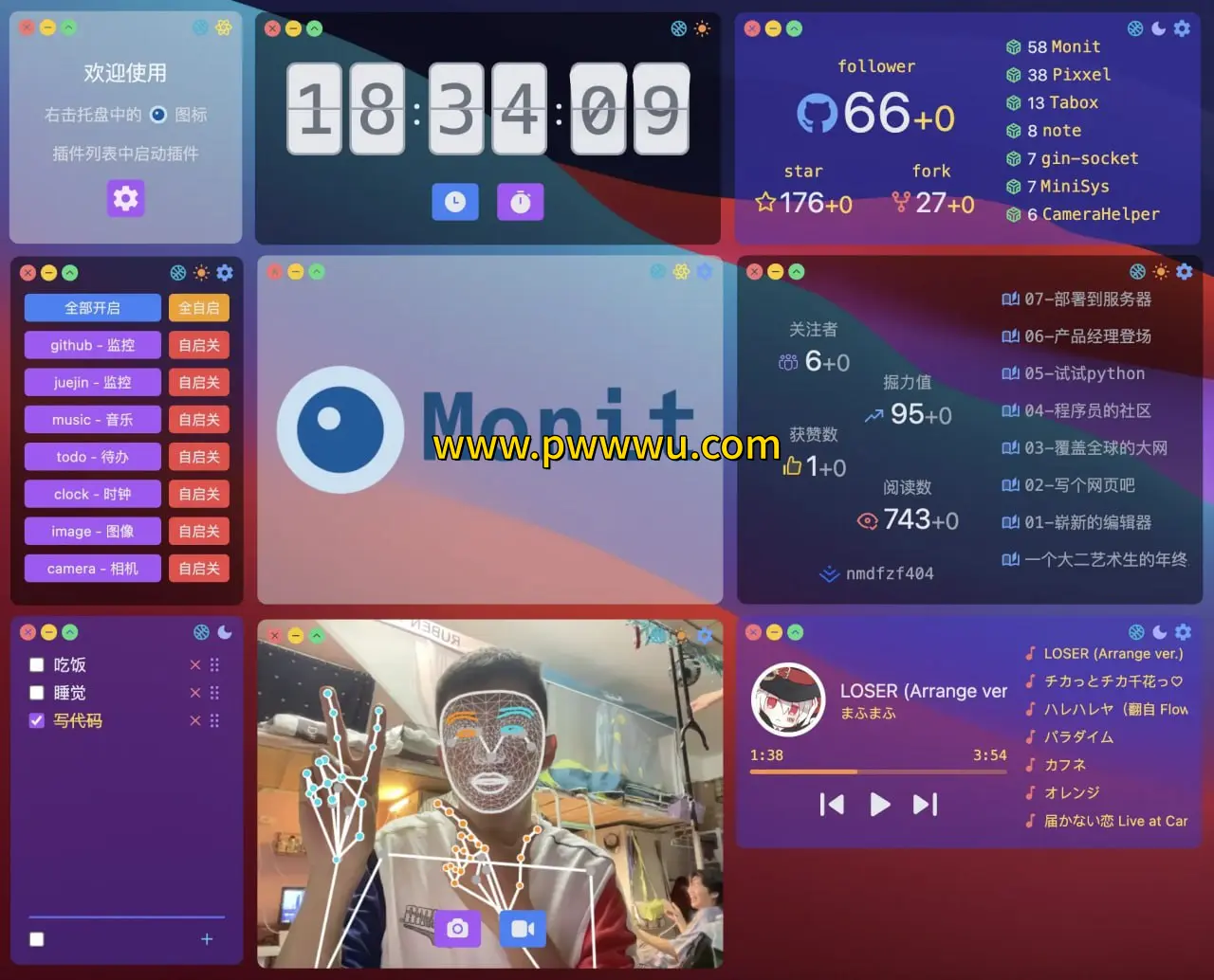 Monit是一款专为Windows系统设计的桌面小组件软件,能够帮助用户在桌面上展示各类实时信息。