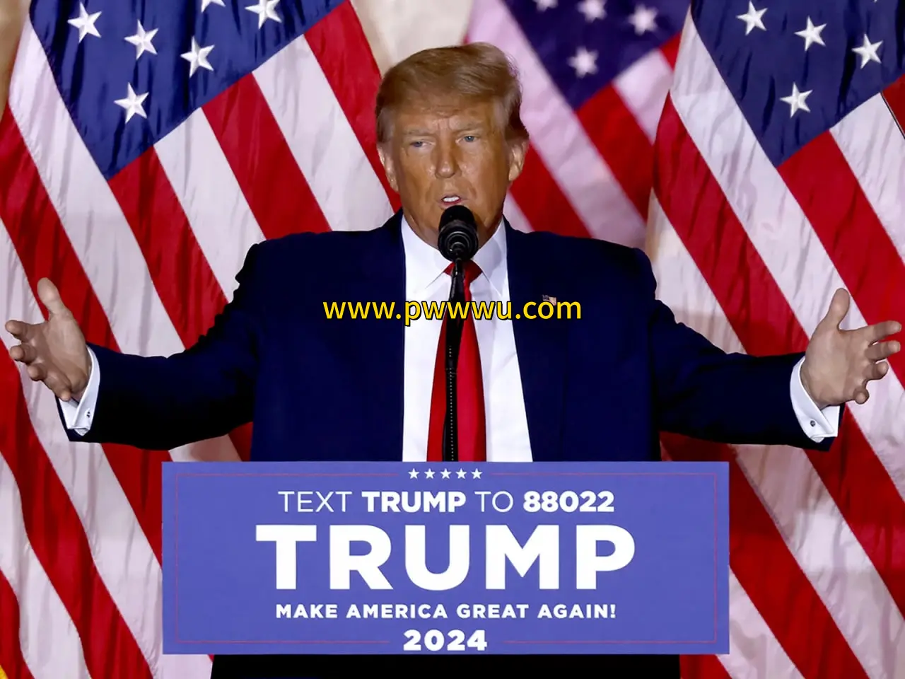 海湖庄园的宣布现场布置庄重而醒目,两侧悬挂的巨型国旗成为最显著的视觉元素。这种场景设计延续了特朗普一贯重视视觉传达的政治风格。其演讲内容着重强调了对国家未来的展望,同时透露出将继续坚持此前执政期间的政策方向。