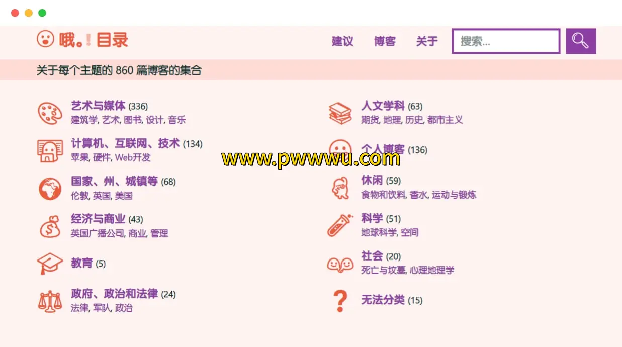 ooh.directory是一个专门收录各类博客的导航站点,目前已经汇总了超过八百六十个不同主题的独立博客。这个平台为读者提供了便捷的内容发现渠道,同时也能帮助博客创作者增加曝光机会。