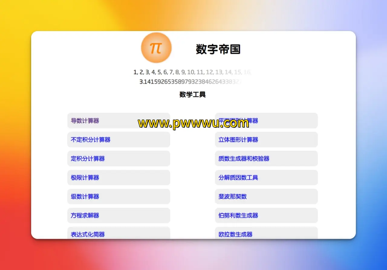 这是一个功能全面的数学工具网站,提供多语言界面支持。用户可以将网站中的独立工具模块通过嵌入代码的方式整合到其他网络平台中。