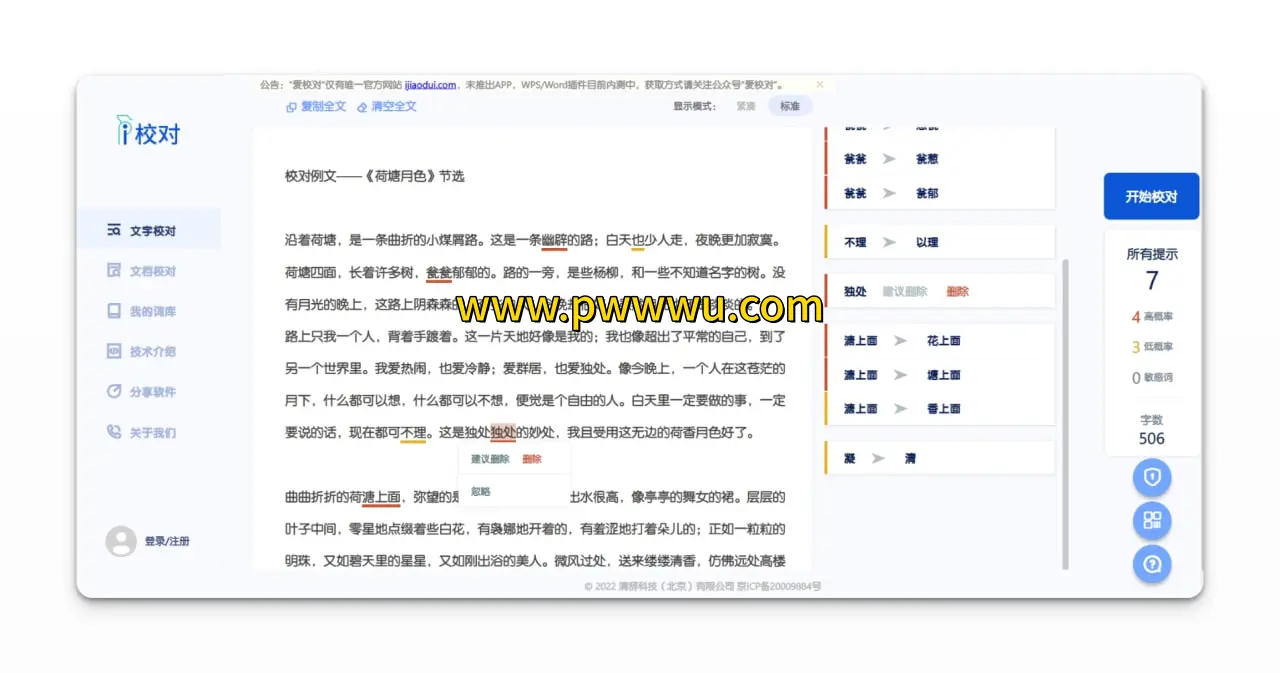 该工具具备智能识别文本错误的能力,可快速检测并修正各类文字问题。通过先进的自然语言处理技术,能够有效改善文本质量,满足不同场景下的校对需求。其操作界面简洁直观,用户无需复杂设置即可快速上手,显著优化文字工作流程。
