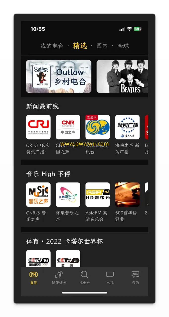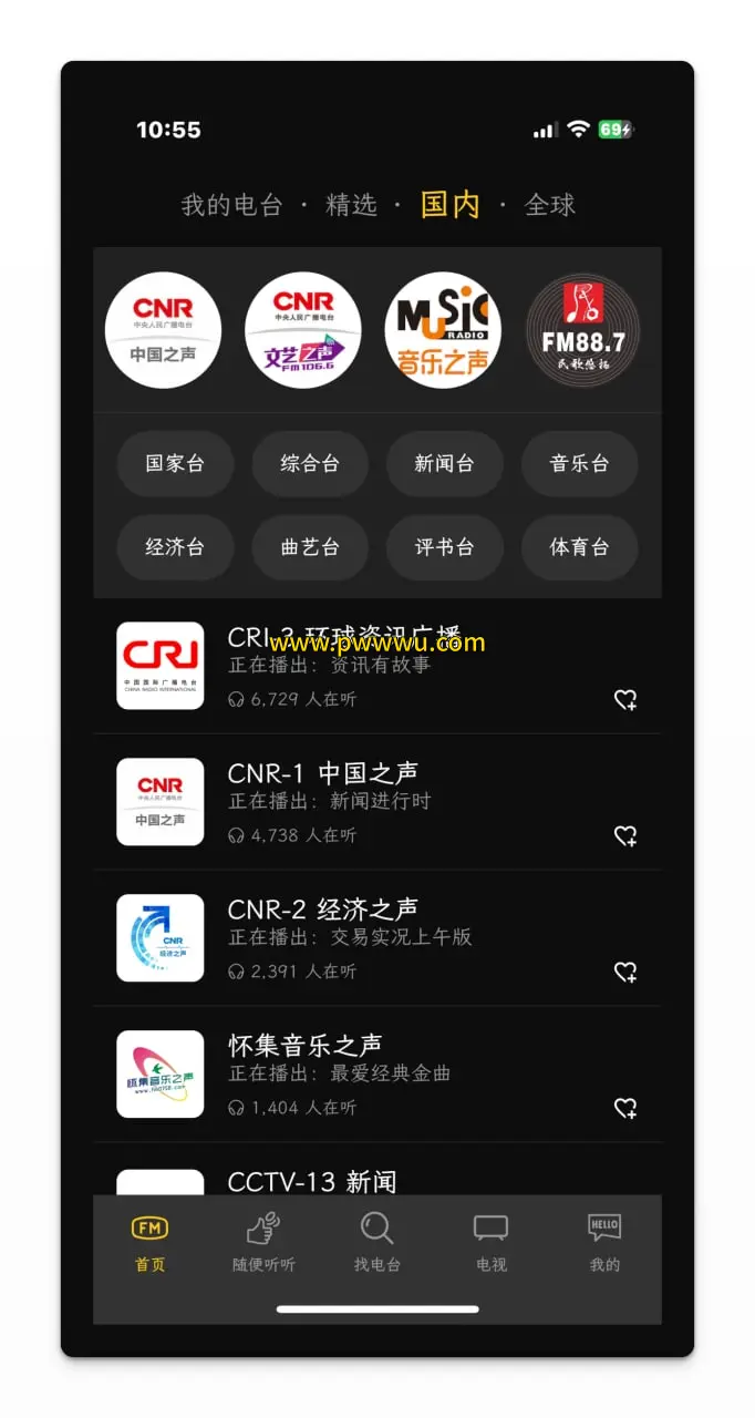- 海量电台资源覆盖全球各地