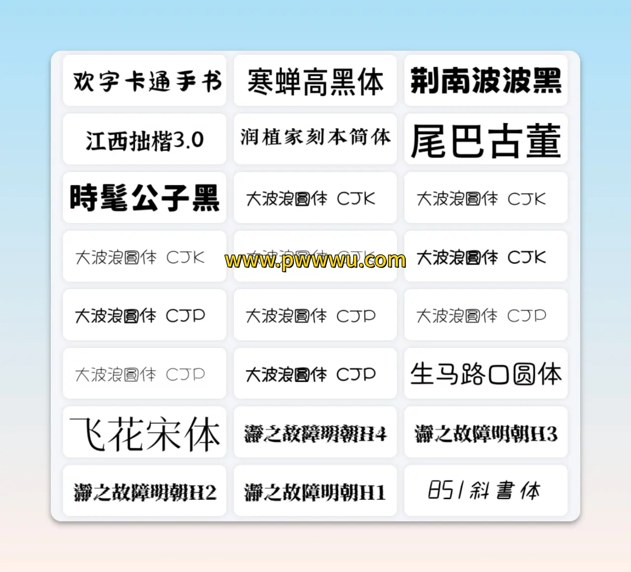 - 字体天下:汇集国内外各类字体样式