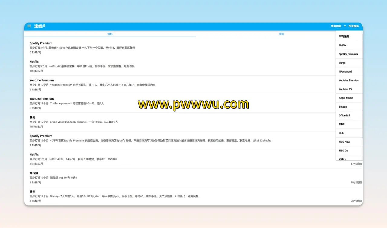 这里汇集了众多主流娱乐平台的账号共享信息,涵盖影视、音乐、游戏等数字服务领域。用户可根据需求筛选不同地区的账号资源,灵活选择短期或长期的合租方案。