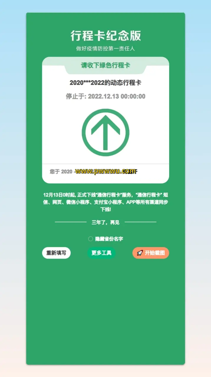 一款高度还原行程卡界面的纪念性网页近日引发关注,这个数字纪念品通过模拟原有行程卡的视觉风格与交互逻辑,让用户能够留存特殊时期的记忆凭证。