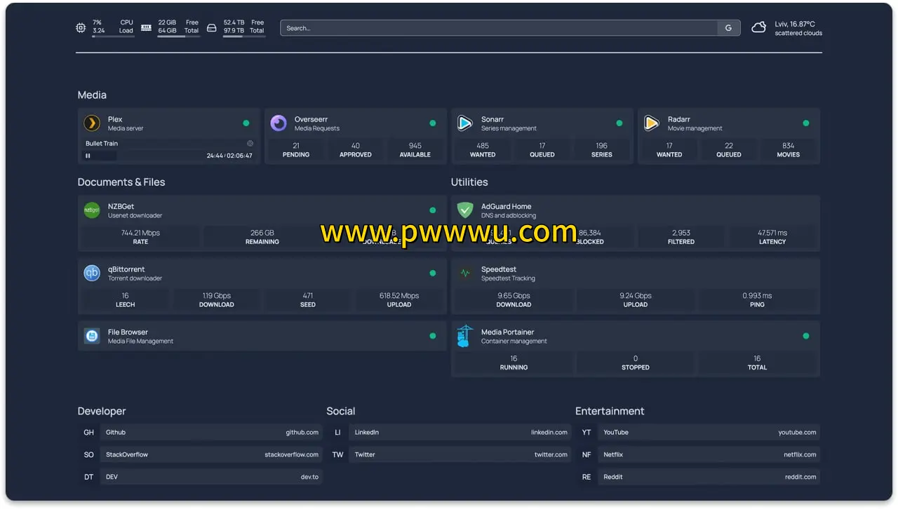 这是一款开源的主页仪表盘工具,具备高度自定义特性。该项目整合了超过25种网络服务模块,并提供了包含中文在内的15种语言本地化支持。该方案对使用群晖系统的技术爱好者具有较好的适配性。