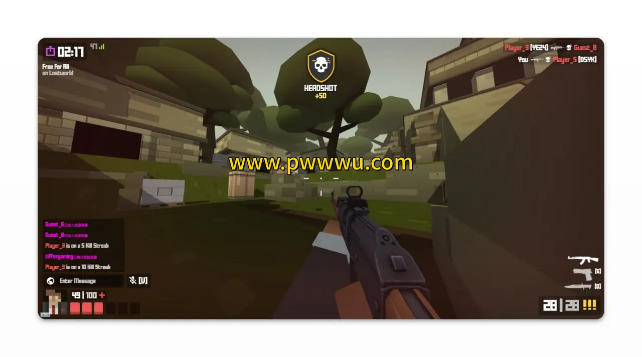 游戏采用极简设计理念,无需下载客户端即可通过浏览器直接运行。快节奏的射击体验搭配多样化的游戏模式,为玩家带来持续的新鲜感。通过自定义按键设置和画质调整功能,玩家可以根据自身习惯优化操作体验。实时匹配机制确保每场对战都能快速组队,让玩家随时享受竞技乐趣。