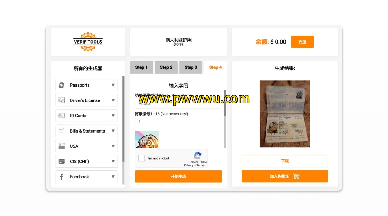 该工具可以制作多个国家的护照、驾照、身份证以及银行对账单等用于KYC验证的材料。