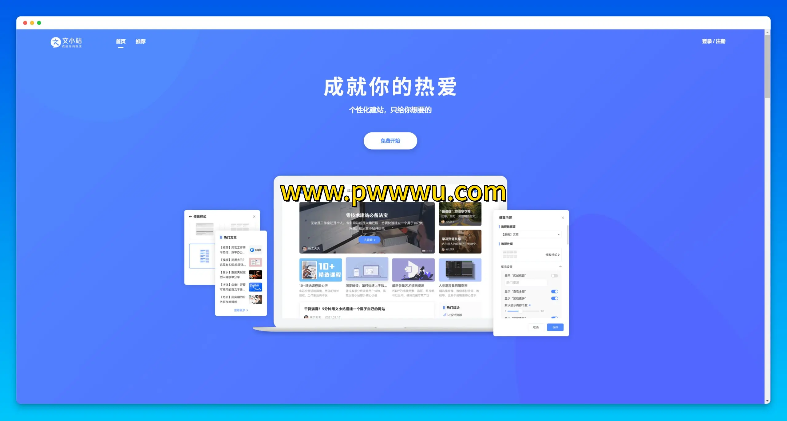 文小站由知名文件存储服务商文叔叔推出,是一款面向新手的免费建站平台。
