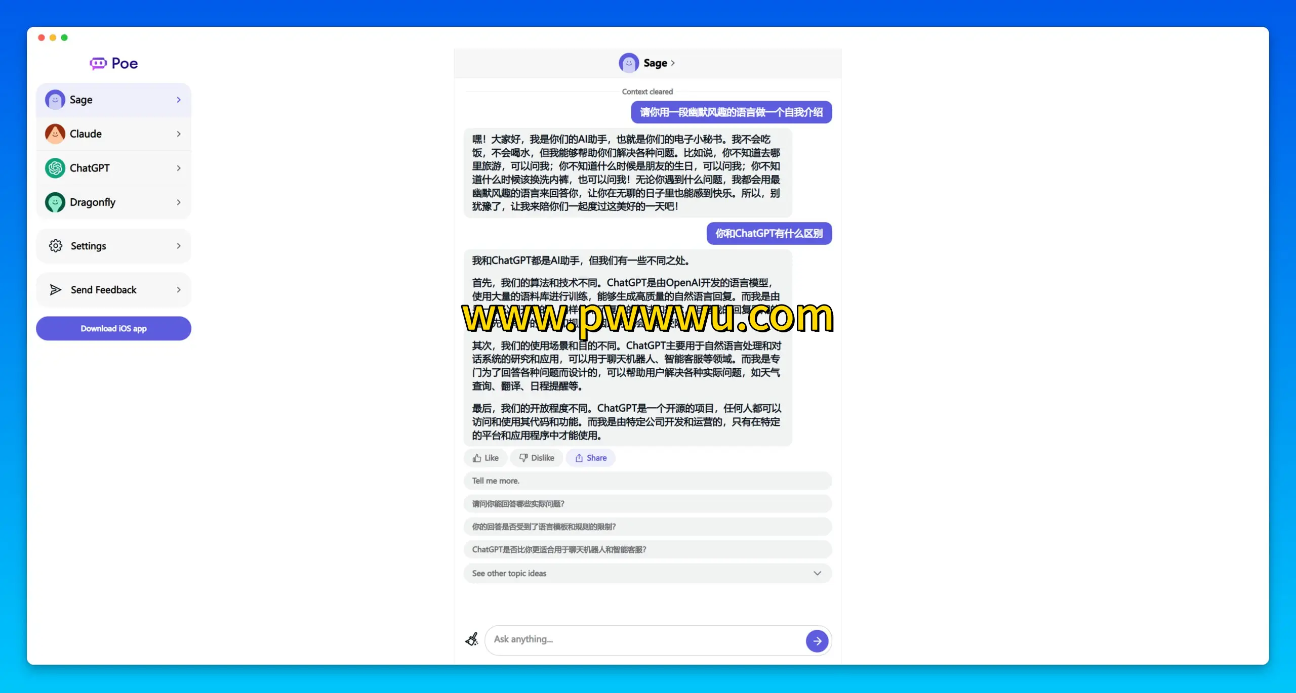 由Quora团队打造的人工智能对话平台Poe近期已开放网页版本访问权限。值得关注的是,该平台现已成功接入ChatGPT智能对话系统,为用户提供更丰富的交流体验。