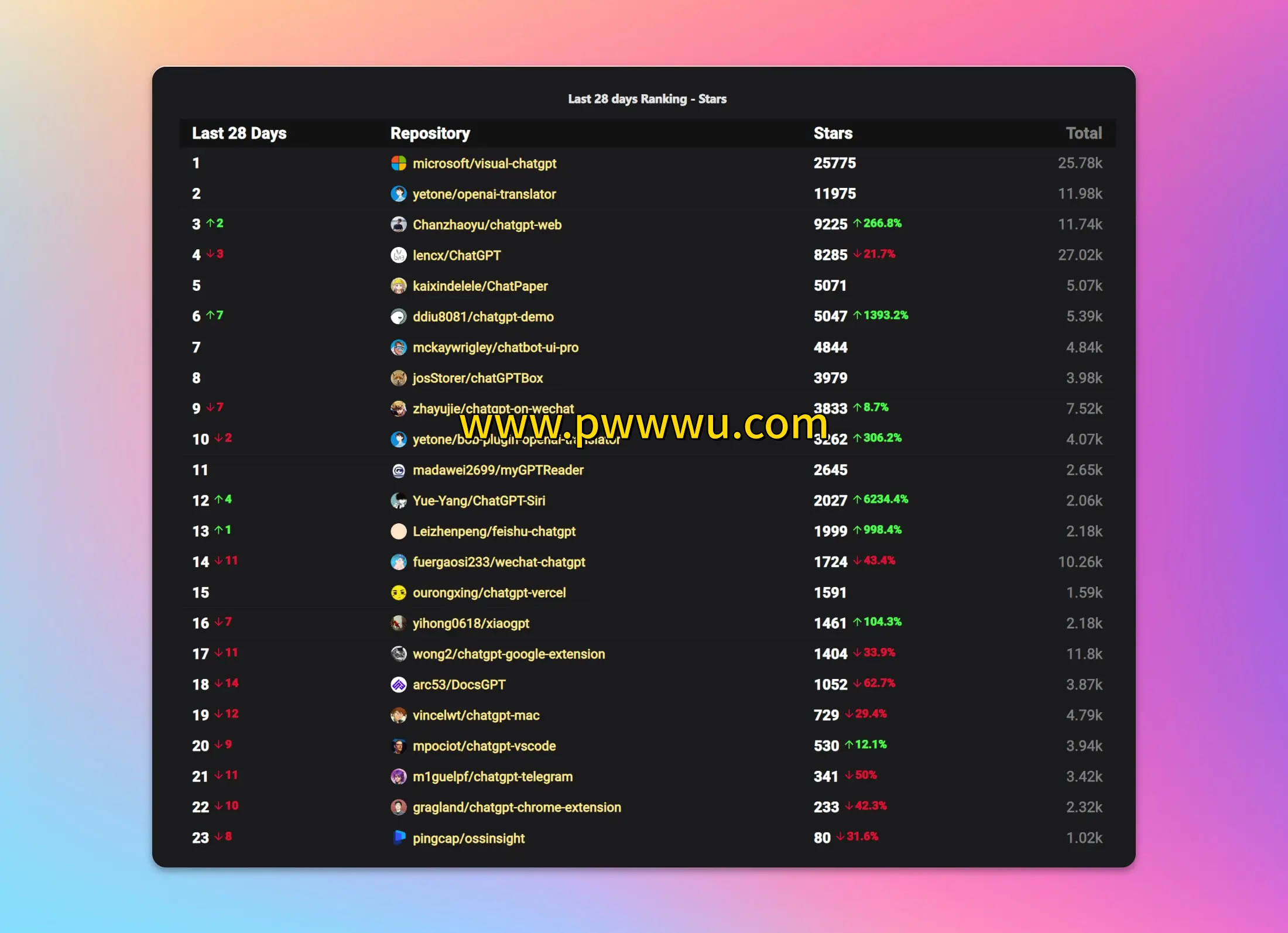 基于GitHub平台近28日星标数据统计的ChatGPT生态项目热度排行近日发布。值得关注的是,在众多优质项目中出现了不少华裔开发者的身影。