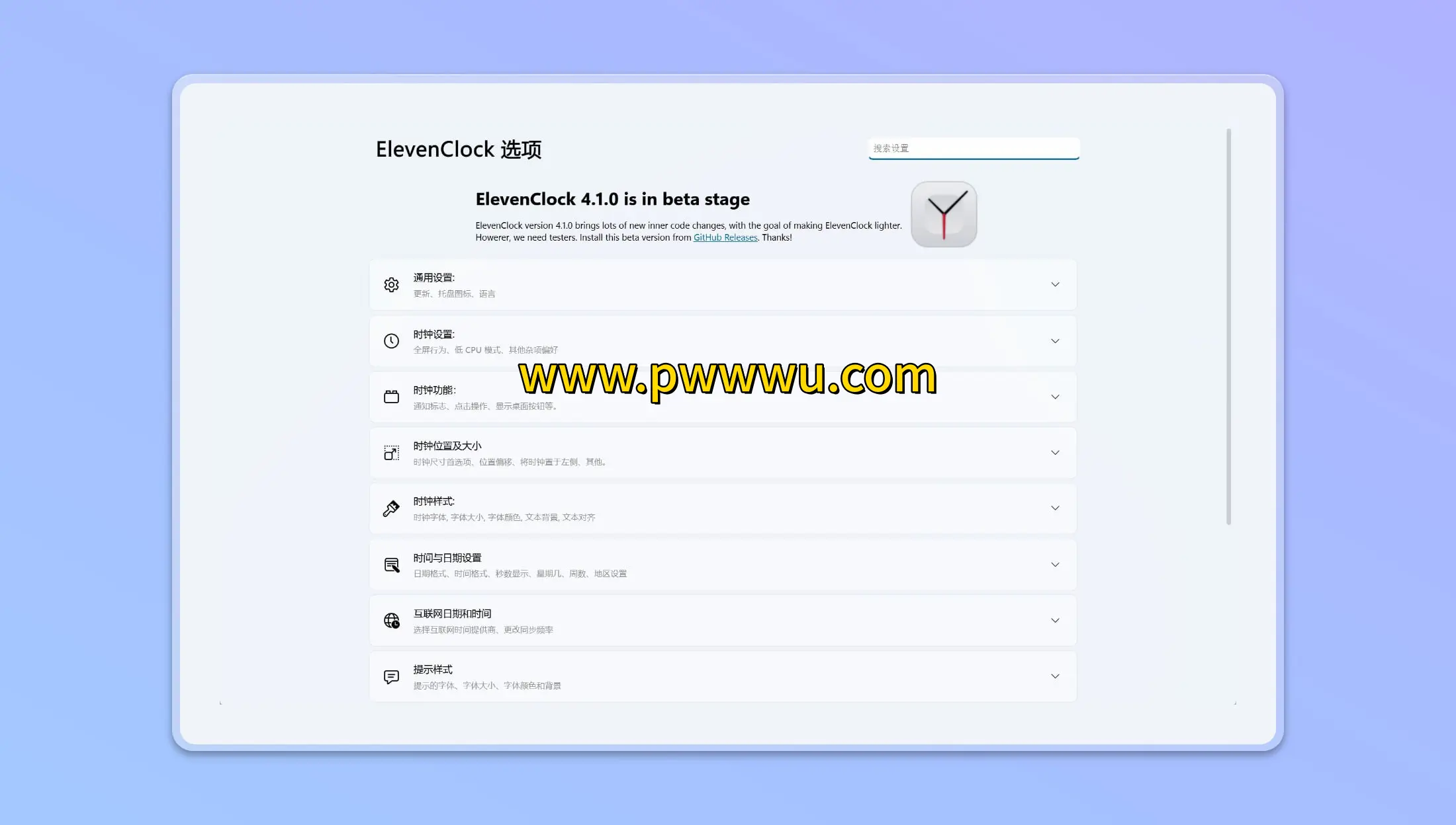 ElevenClock 是一款专为 Windows 11 设计的时钟自定义工具。该工具允许用户对任务栏时钟的外观样式、显示位置、时间格式、时区设置以及点击行为进行个性化调整。
