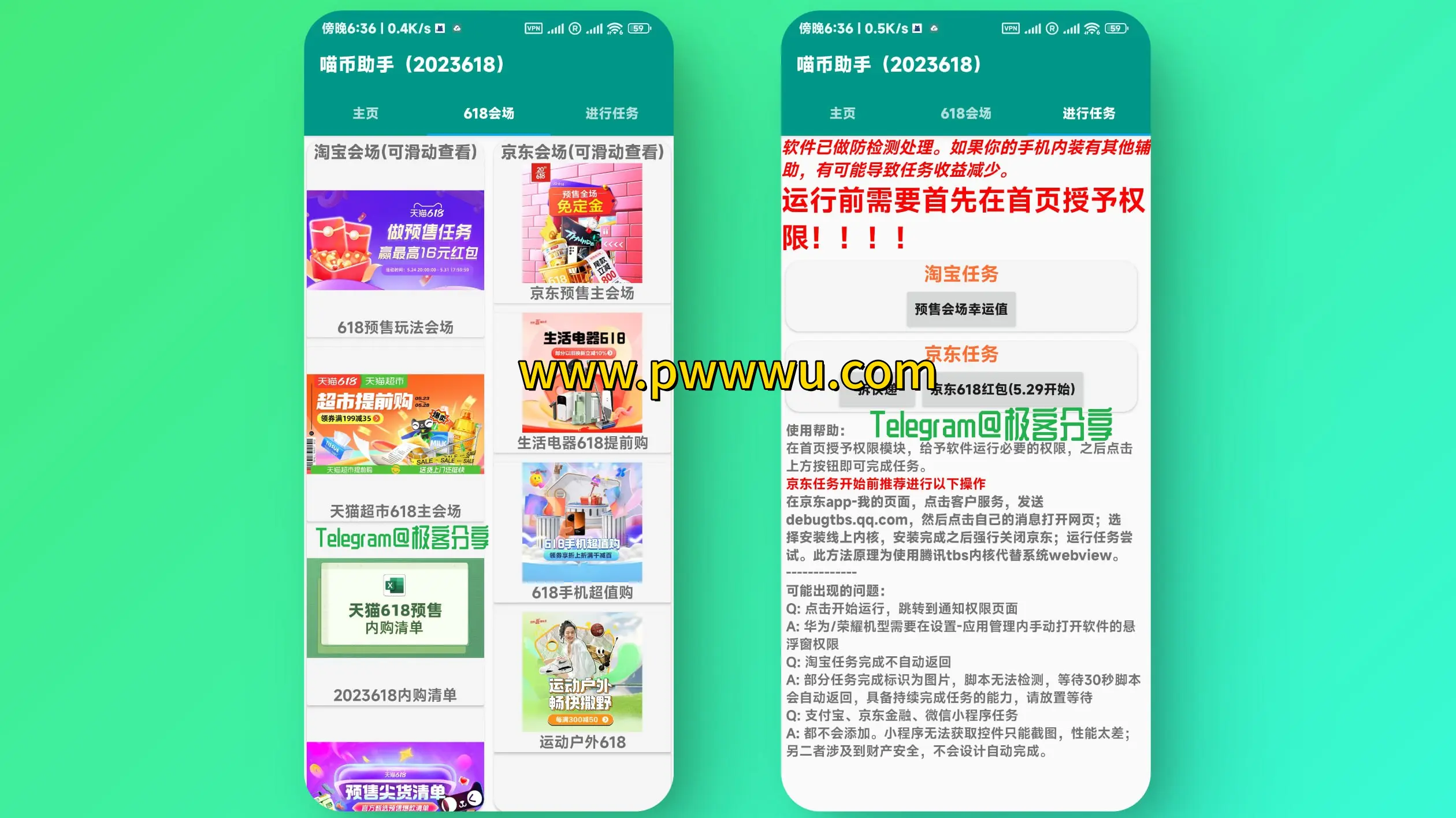 这是一款专为618购物节设计的自动化工具,能够帮助用户快速完成淘宝、天猫及京东平台的任务流程。该程序基于AutoX.JS框架开发,所有任务执行代码均对外开放。对隐私保护有较高要求的用户,可直接将源码复制到AutoJS环境中独立运行。