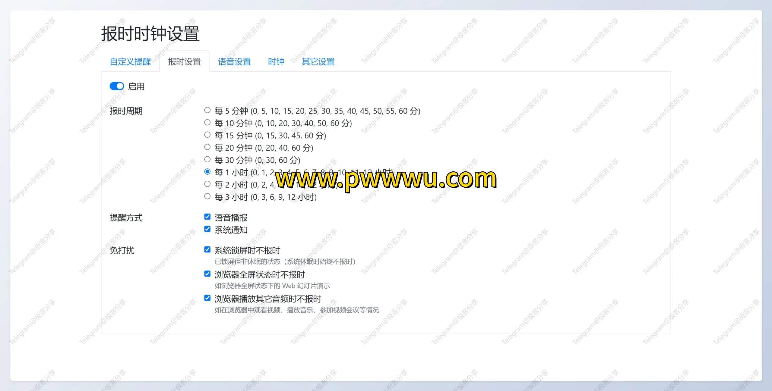 这款创新工具能够以语音形式在每个整点进行时间播报,为用户带来独特的时间感知体验。除了基础报时功能外,还支持用户根据个人需求设置专属提醒事项。
