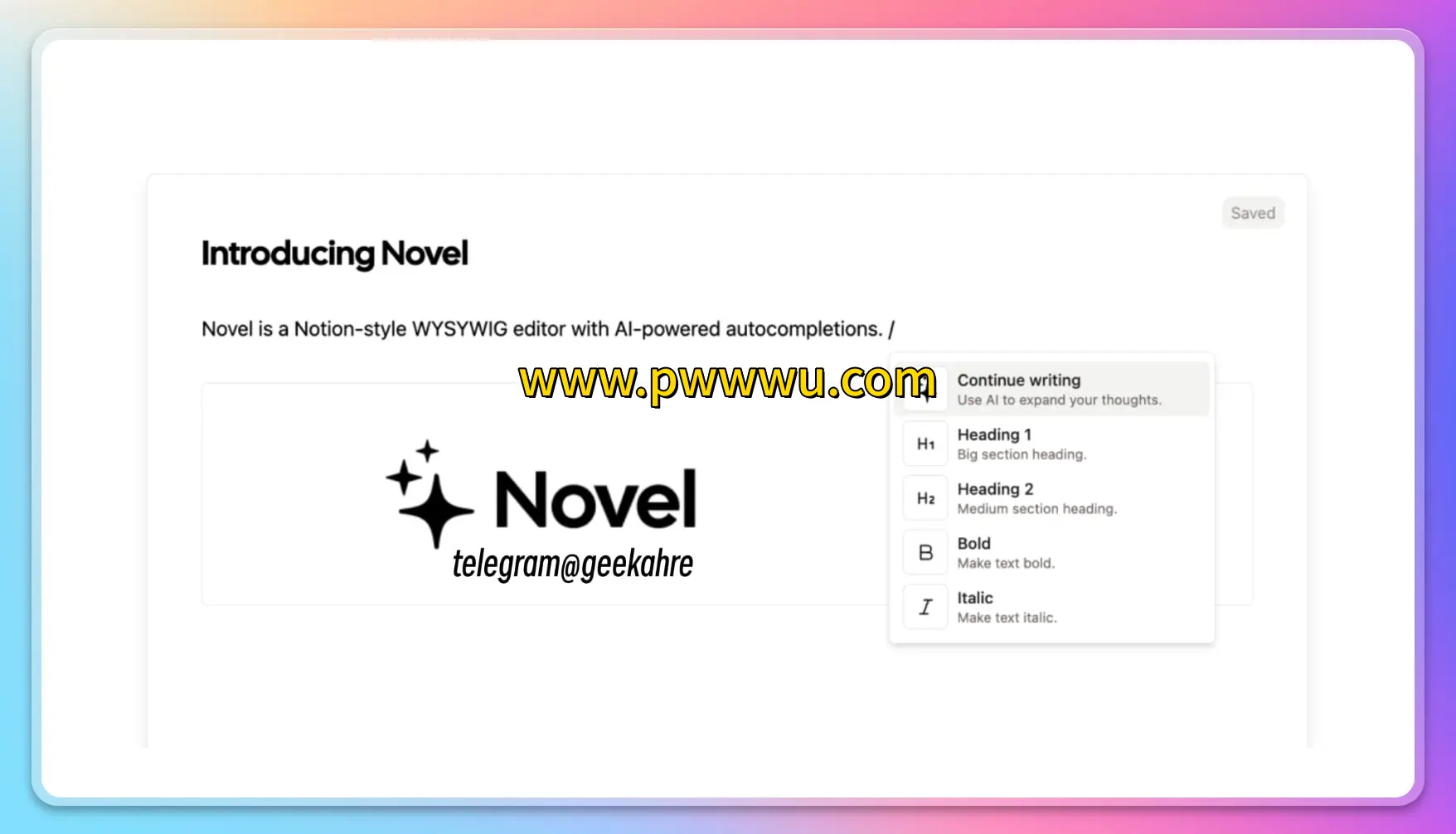 Novel是一款基于OpenAI技术构建的开源可视化编辑器,具备与NotionAI相近的智能辅助功能。该编辑器采用清爽的界面设计,在中文环境下运行流畅,并支持用户自主部署至Vercel平台。