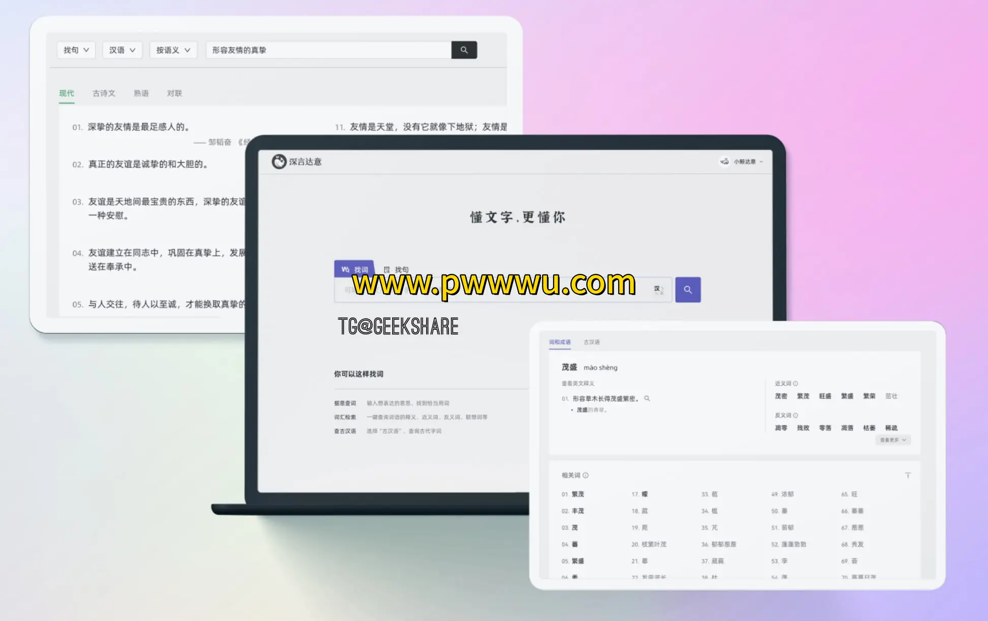 该平台整合了WantWords反向词典与WantQuotes据意查句两大核心功能,专注于解决语言表达中的措辞难题。通过智能检索系统,可依据描述意图快速匹配契合的词汇与名句,有效提升文字表达的准确性。