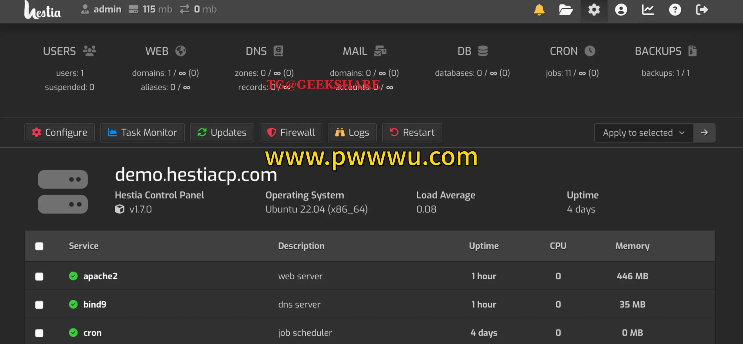 Hestia是一款开源服务器控制面板,目前仅兼容Debian与Ubuntu系统环境。该面板集成了Apache2、Nginx和PHP-FPM组件,通过单行命令即可完成部署。作为网站建设工具,其基础功能完善,并具备搭建邮件服务器的特色能力。